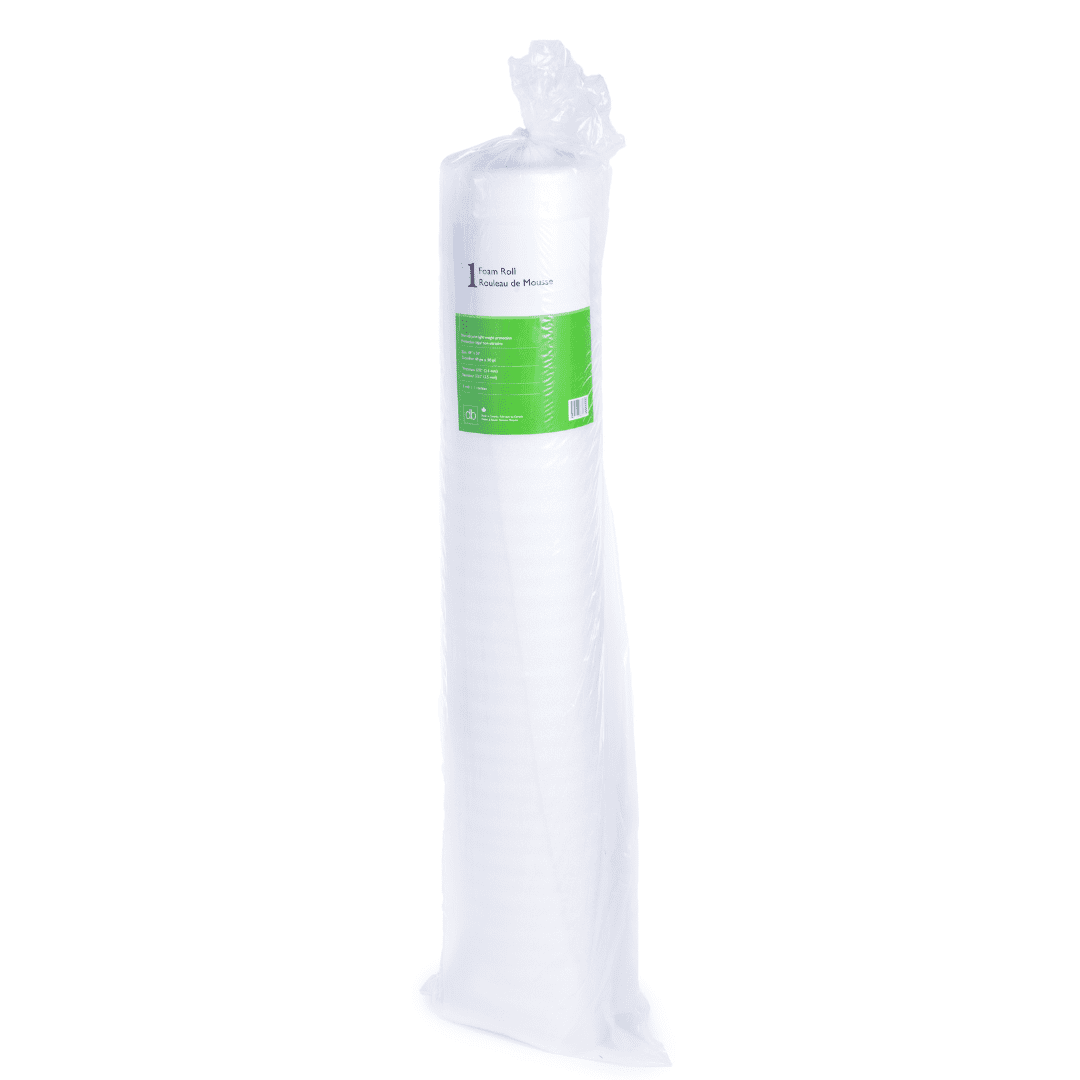 Our 48″x50′ white foam roll offers extra cushioning compared to the standard 3/16″ bubble wraps, providing items with delicate additional protection during a move or while in storage.